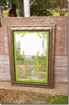 So a couple of weeks ago, I finally took the mirrors outside and prepped them. I taped saran wrap over the mirror with painter’s tape.